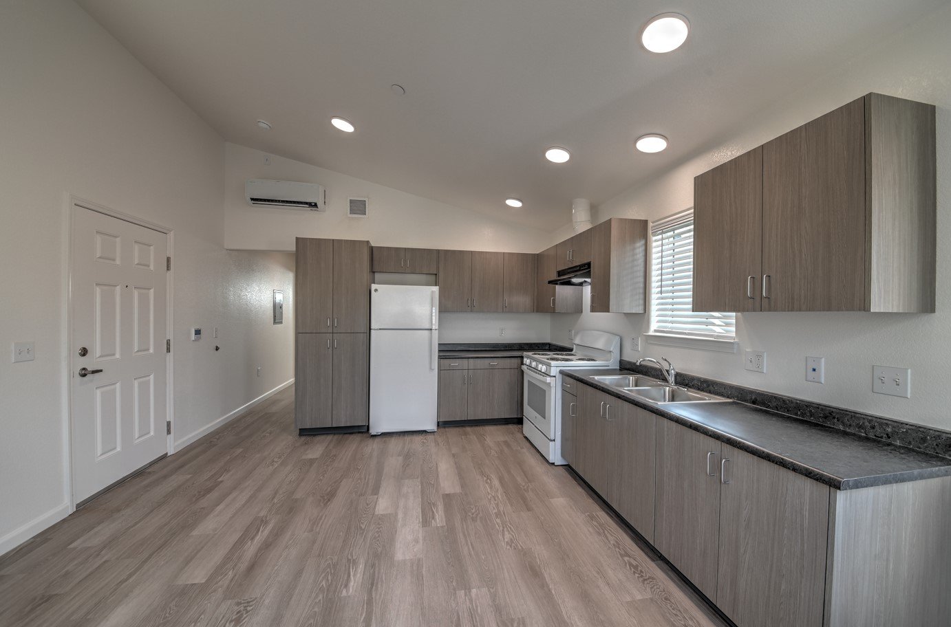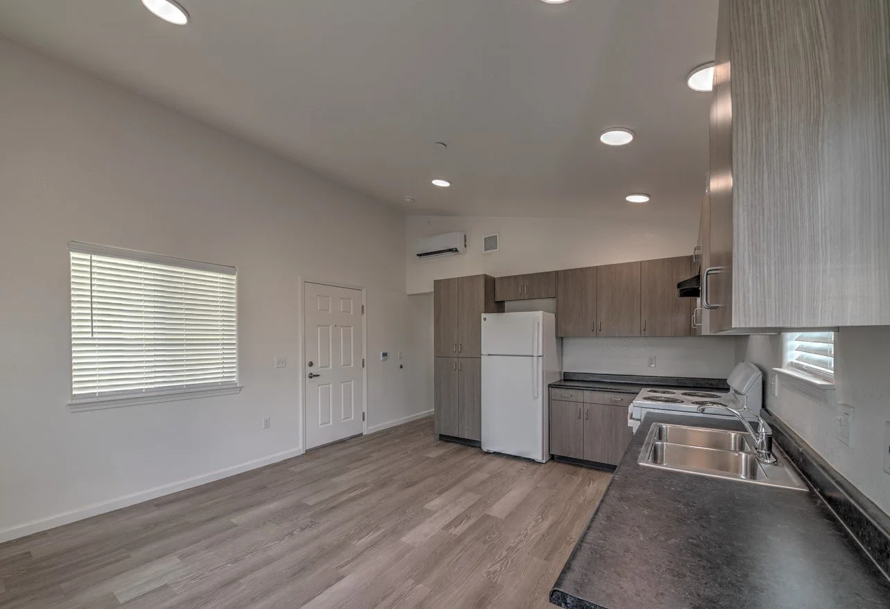 The King Kennedy Veteran Housing project delivers comprehensive electrical infrastructure with three utility transformer pads, protective bollards, and multimeter service for senior residence plus 100amp services for 23 small houses.